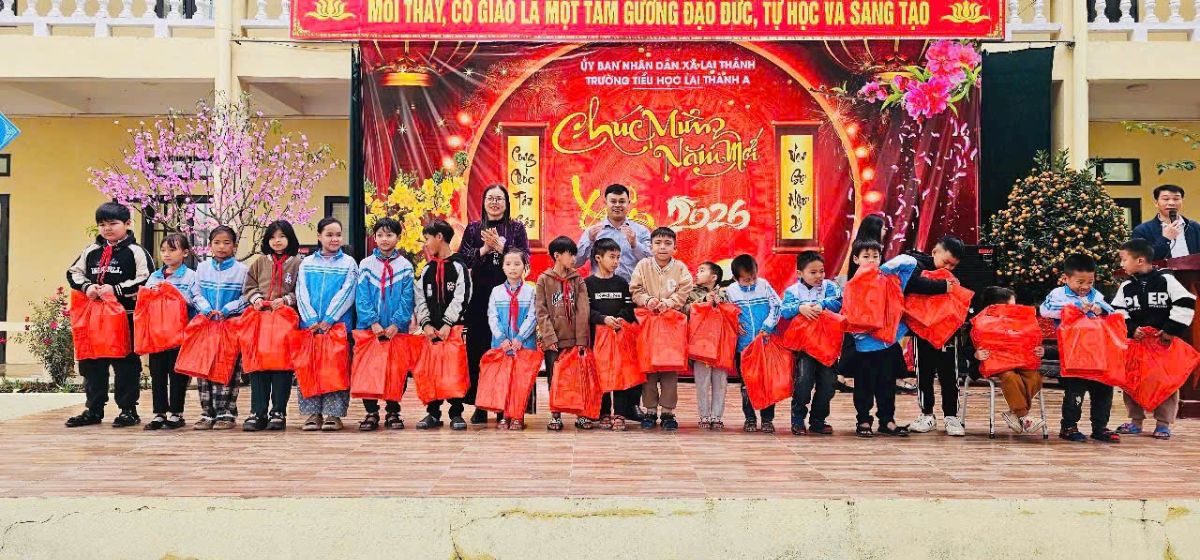 Nhằm phát huy truyền thống “tương thân tương ái”, “lá lành đùm lá rách” và giáo dục học sinh về tinh thần sẻ chia, yêu thương trong dịp Tết đến Xuân về, Trường Tiểu học Lai Thành A đã tổ chức chương trình “Tết ấm tình thương 2026” với nhiều hoạt động ý nghĩa, thiết thực dành cho các em học sinh có hoàn cảnh khó khăn trong nhà trường.