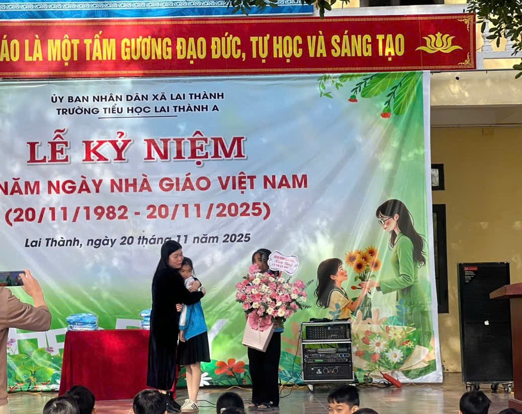 Đồng chí Phan Văn Trang – Đảng ủy viên, Phó chủ tịch UBND xã Lai Thành tặng hoa chúc mừng đồng chí Trần Thị An – Hiệu trưởng Trong những năm tháng công tác tại Trường Tiểu học Lai Thành A, cô Trần Thị An đã dìu dắt, xây dựng tập thể đoàn kết, đưa phong trào dạy và học ngày càng vững mạnh, để lại nhiều dấu ấn tốt đẹp trong lòng đồng nghiệp, học sinh và phụ huynh.